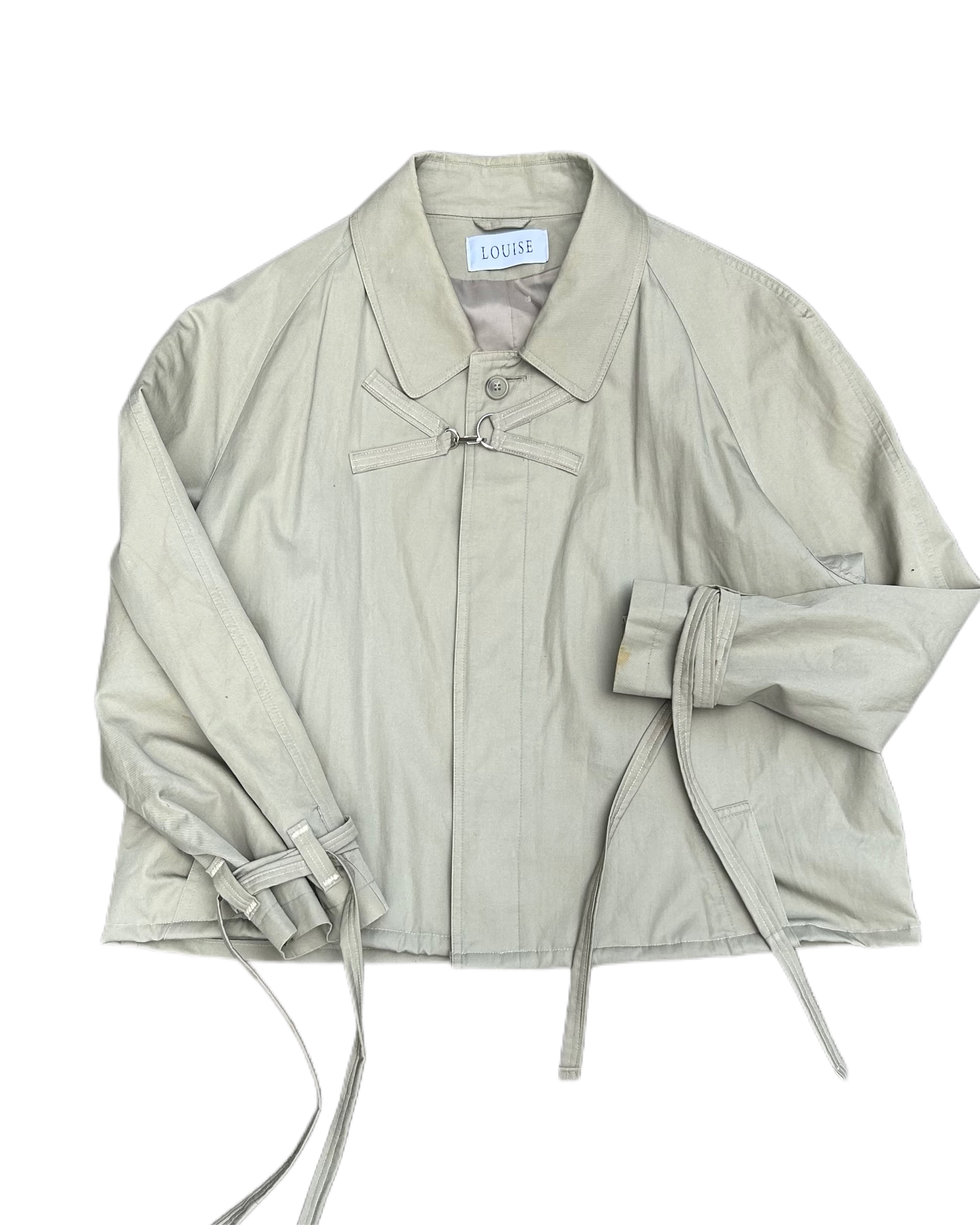 商品説明 / 全体的に使用感あり。右袖膝あたりにシミ、左袖裾部分にシミ、背中裏地に小穴あり。