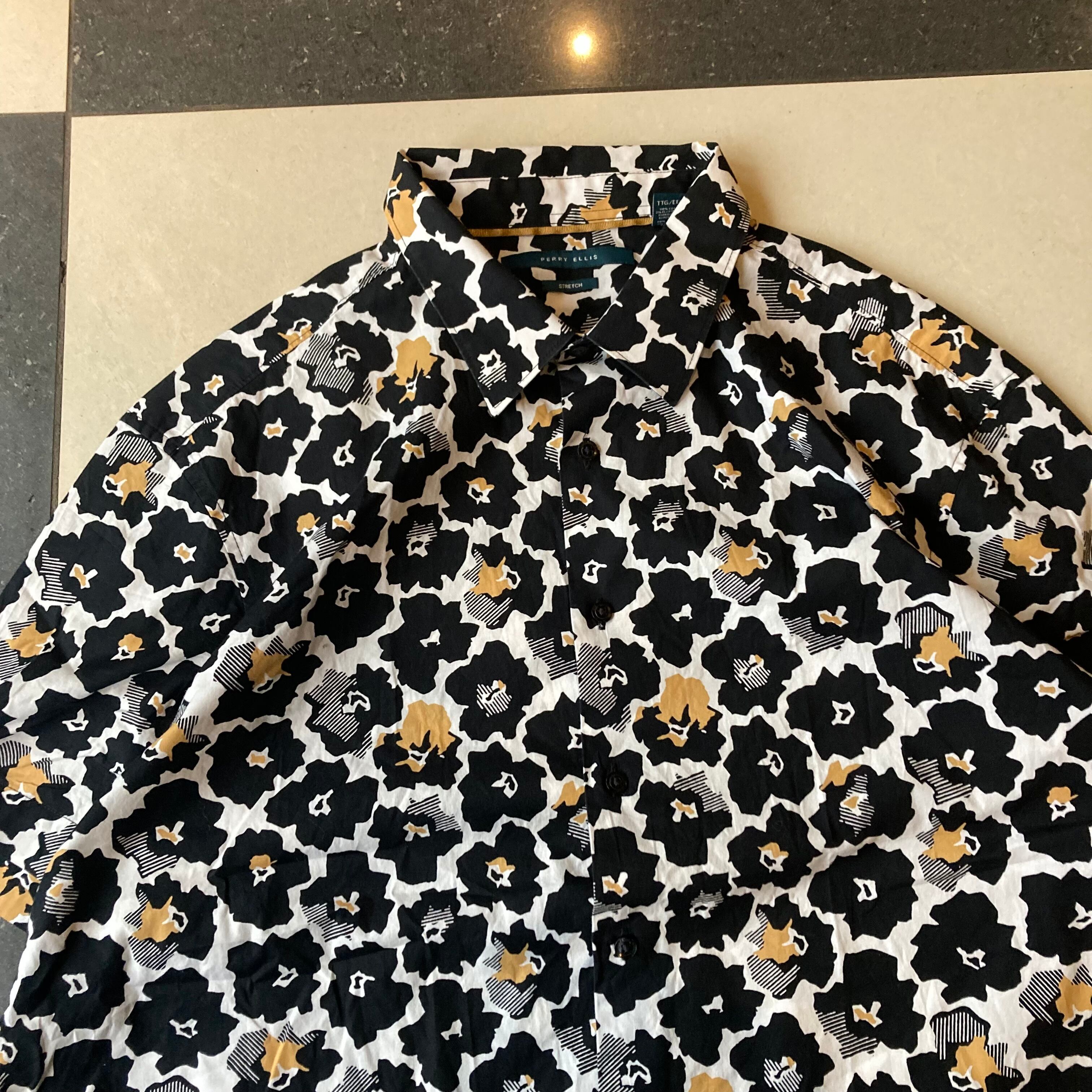 00s Perry Ellis flower pattern cotton shirt